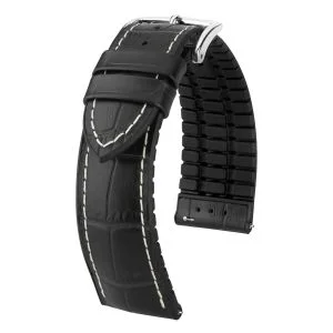 PAUL wird aus feinstem italienischem Kalbsleder hergestellt und in Folge mit einer naturgetreuen Alligatorprägung veredelt. Die semimatte Oberfläche im charakteristischen Zweiton sorgt dabei für den stilvollen Charakter von diesem Uhrenband. Besonders hervorheben muss man den HIRSCH Premium Caoutchouc Kern. Dieser sorgt für einen zuverlässigen Tragekomfort bei jeder Bewegung. Damit ist das Uhrenarmband PAUL ein treuer Begleiter für jeden Tag.